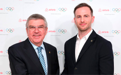 Airbnb será el casero de los Juegos Olímpicos hasta 2028. Thomas Bach, presidente del COI, y Joe Gebbia, cofundador de Airbnb, en la firma del acuerdo...